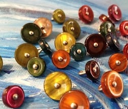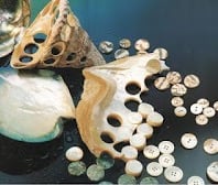 A real shell button is a type of clothing fastener made from the shells of various marine creatures, such as abalone, conch, cowrie, mother of pearl, and mussel shells. These buttons are created by cutting, shaping, and polishing the natural shells to form button-like discs or shapes. Real shell buttons are known for their elegant and iridescent appearance, as well as their unique patterns and colours derived from the natural characteristics of the shells.